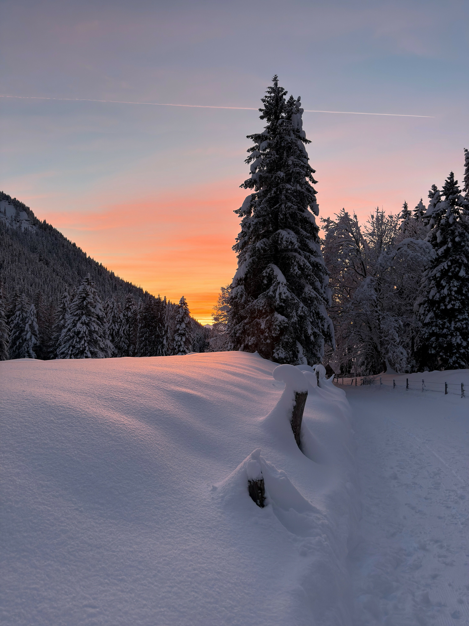 The last colours of the day behind the trees