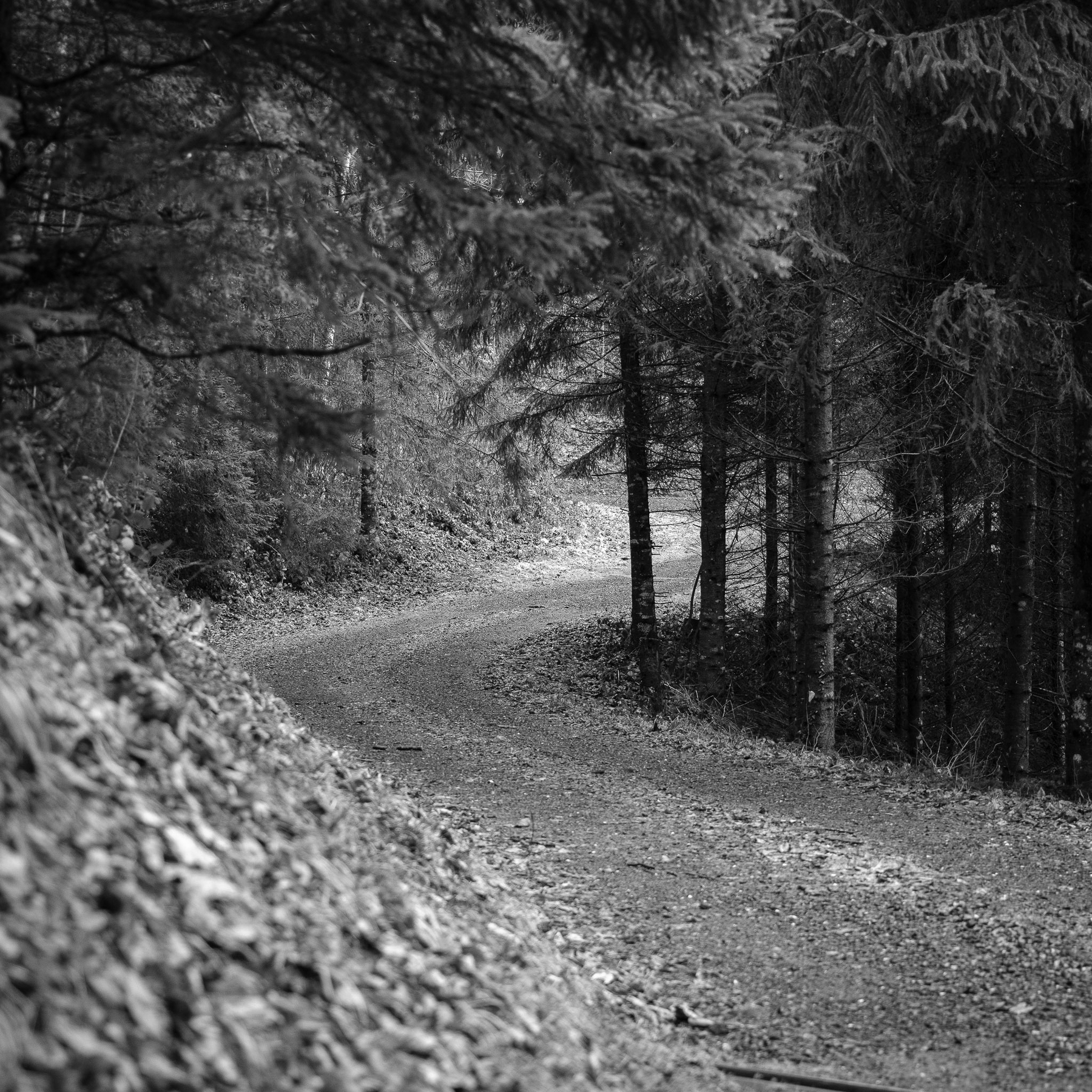 Balade en forêt - Carré en noir & blanc